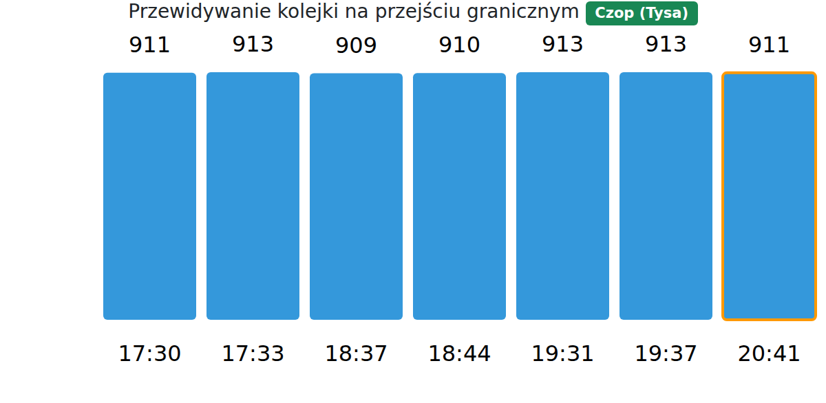 Planuj swoje podróże z wyprzedzeniem, korzystając z aktualnych informacji o kolejkach na granicy na punkcie kontrolnym Czop (Tysa) - transport ciężarowy, aby przejazd był szybki i wygodny. Zwróć szczególną uwagę na te godziny, aby uniknąć szczytowego natężenia i skrócić czas oczekiwania.